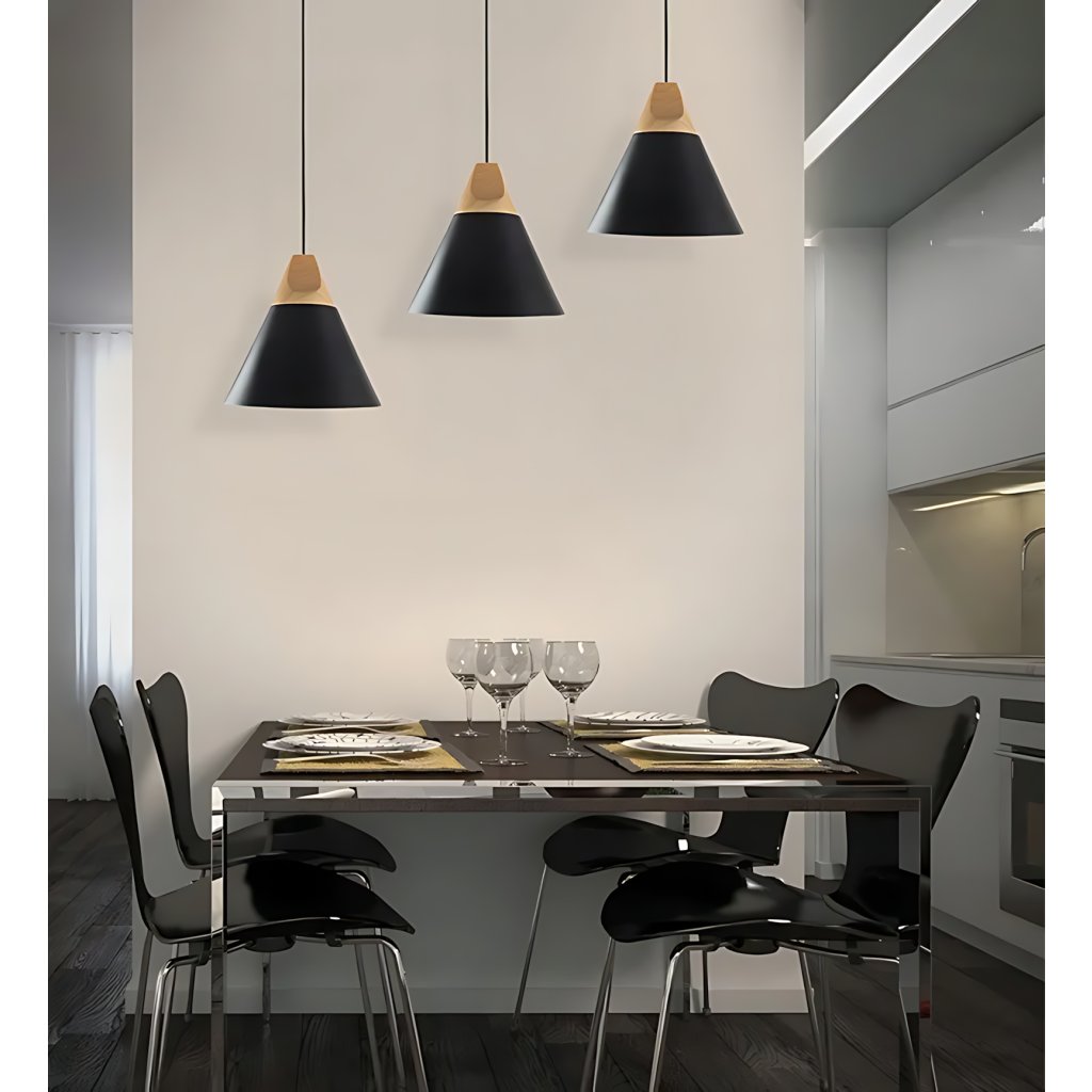 Lampa este realizată din lemn în combinație cu metal, cu o grilă metalică pe tavan. Lampa are cel mai popular filet pentru bec E27. Lungimea cablului poate fi ajustată pentru a se potrivi camerei sau amenajării.