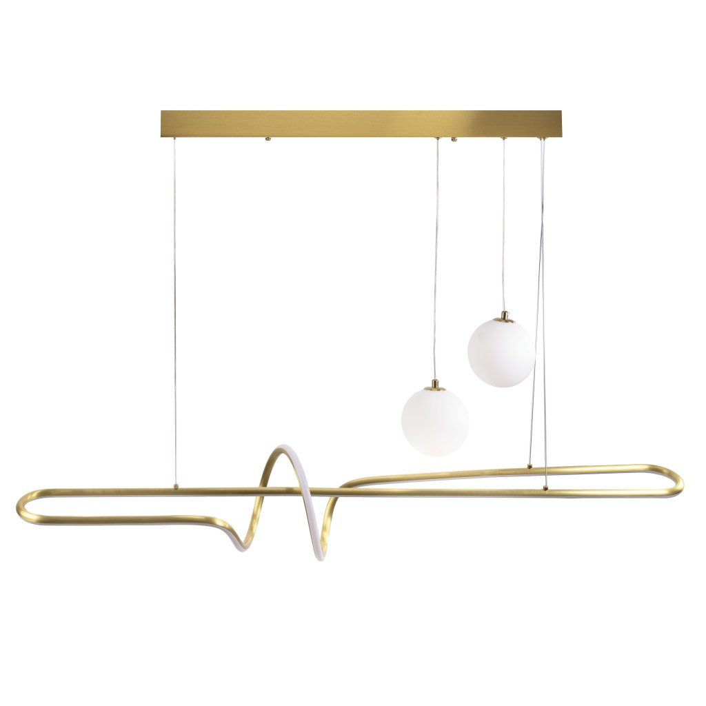 O lampă suspendată modernă, cu o formă minimalistă, va captiva prin unda sa luminoasă, suspendată delicat pe șiruri subțiri. Silueta sa subțire și finisajul sofisticat în alb și auriu creează o compoziție impresionantă care se potrivește perfect în amenajări moderne și luxoase. Este o alegere ideală pentru living, sufragerie, dar și spații comerciale elegante. Înălțimea reglabilă a suspensiei permite ajustarea precisă a lămpii la aspectul și caracterul interiorului, ceea ce asigură nu doar funcționalitate, ci și un efect vizual unic.