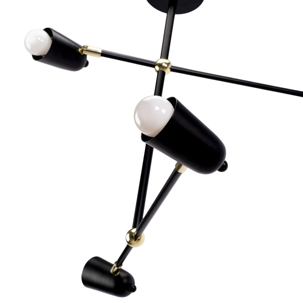 O lampă de tavan neagră cu un design industrial clasic, care se va potrivi perfect ca element central de iluminat în interioare elegante. Accentele aurii îi conferă un caracter elegant, iar filetul universal E27 vă permite să alegeți orice bec în funcție de preferințele personale.