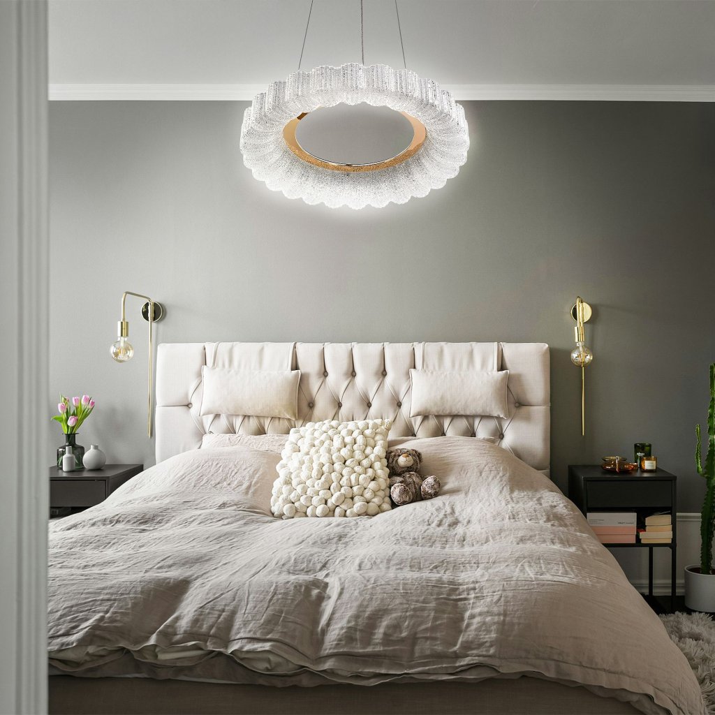 Lampa este perfectă ca punct de lumină principal într-un living, sufragerie, hol sau într-un spațiu comercial elegant. Datorită iluminării LED încorporate, oferă eficiență energetică și o durată lungă de viață, eliminând necesitatea înlocuirii becurilor. Posibilitatea de a regla lungimea suspensiei vă permite să ajustați lampa la înălțimea interiorului, creând un efect luminos și vizual spectaculos. Ideală pentru iubitorii de stil modern cu o notă de glamour.