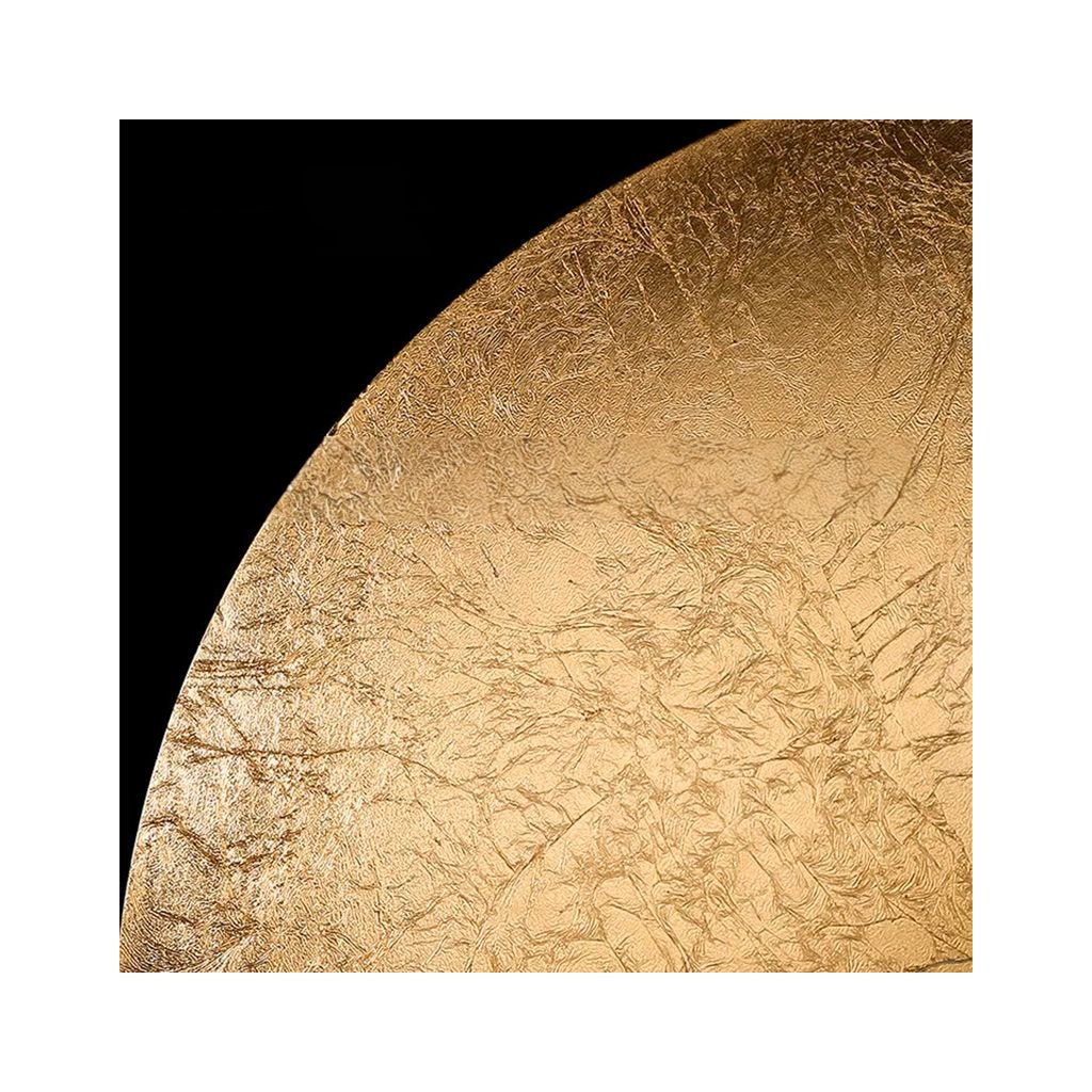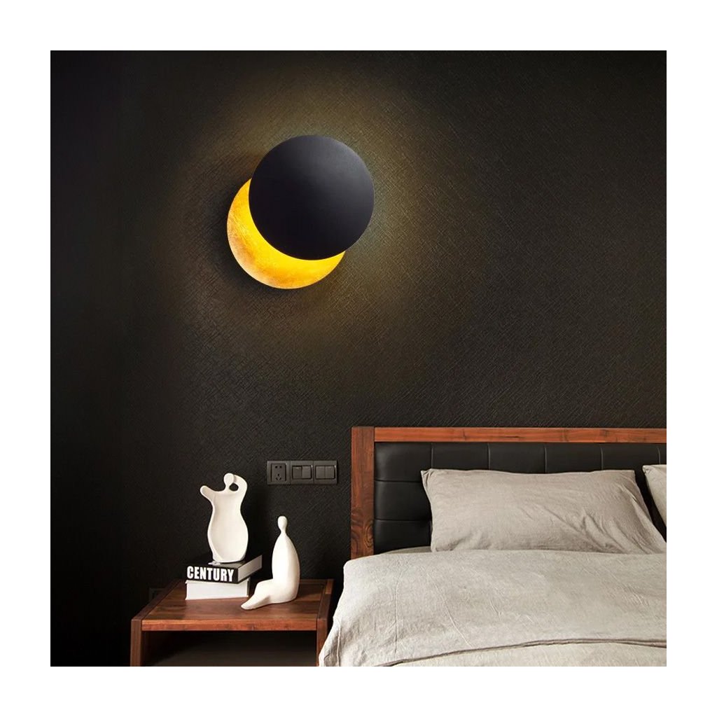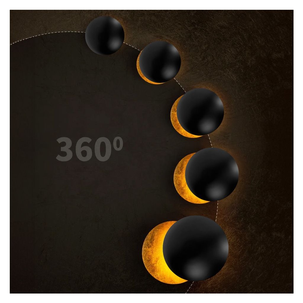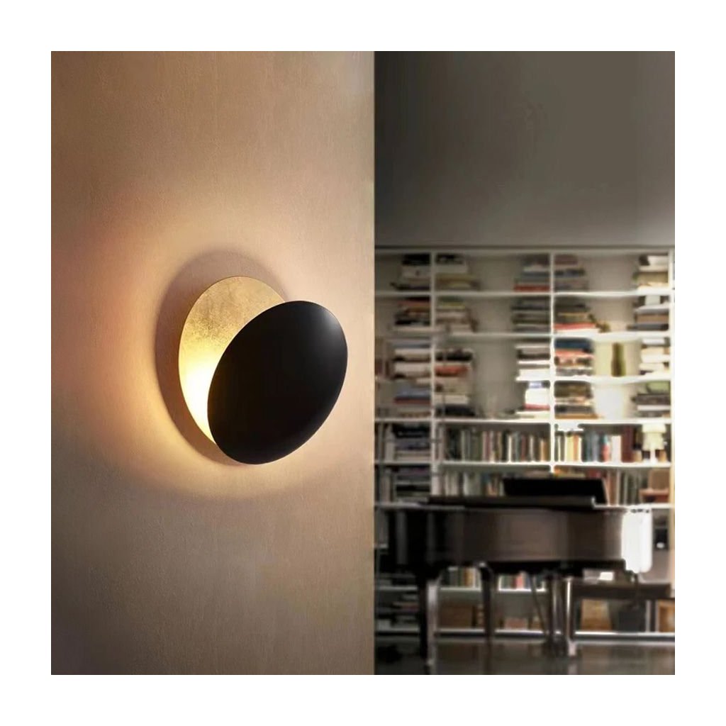 ⚜️ Applique este un exemplu unic de design modern care combină perfect funcționalitatea cu estetica. Lampa este formata din doua discuri - suprafata exterioara este finisata in negru mat clasic, in timp ce suprafata interioara are un finisaj metalic auriu cu o textura clara care adauga caldura si eleganta.