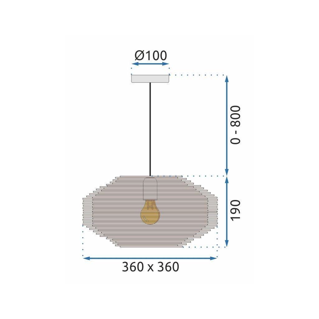 Lampa este realizată în principal din șipci de bambus. Accentul lucrat manual și din lemn conferă lămpii un caracter unic care se potrivește în aproape orice aranjament. Datorită stilului său simplu, lampa se potrivește în orice cameră - fie că este vorba de bucătărie, sufragerie sau camera copiilor.