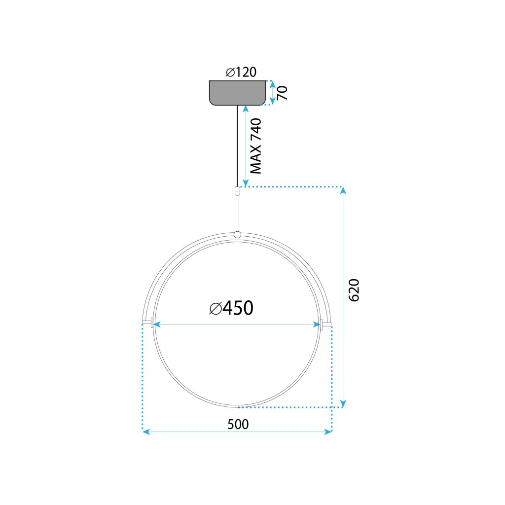 ☀️ Această lampă suspendată cu LED de designer este o ofertă unică pentru iubitorii de interioare moderne, elegante. Forma sa unică și lumina moale, difuză, cu un cerc LED cu diametrul de 50 cm creează o atmosferă extraordinară care va sublinia perfect caracterul sufrageriei, dormitorului sau sufrageriei.