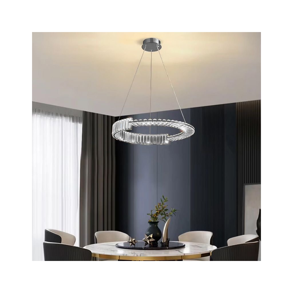 Lampa cu pandantiv cu LED este o combinație unică de funcționalitate modernă și eleganță atemporală, care aduce o aură de lux în interior. Forma sa de design, bogată în decorațiuni din cristal, atrage atenția, difuzează ușor lumina și conferă spațiului un caracter unic. Datorită stilului său universal, va fi ideală atât pentru aranjamentele moderne, cât și pentru cele clasice, devenind punctul focal al decorului și subliniindu-i rafinamentul.
