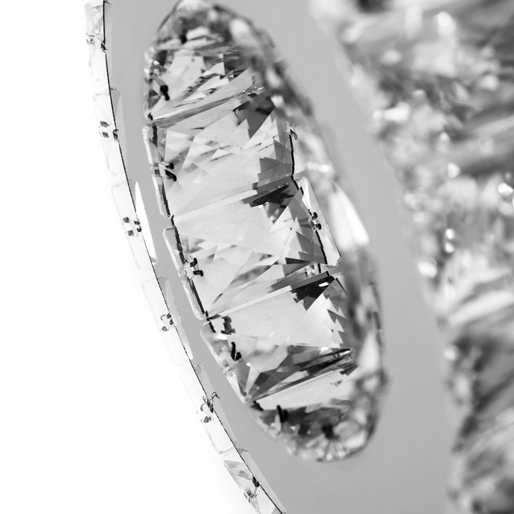 Lampa de perete este realizată din metal de înaltă calitate, rezistent la zgârieturi sau deteriorări mecanice. Tot caracterul și o notă elegantă sunt adăugate de cristale, care creează un efect de lumină frumos prin difuzarea luminii. Datorită utilizării LED-urilor, lampa consumă foarte puțină energie și menține o durată de viață foarte lungă.
