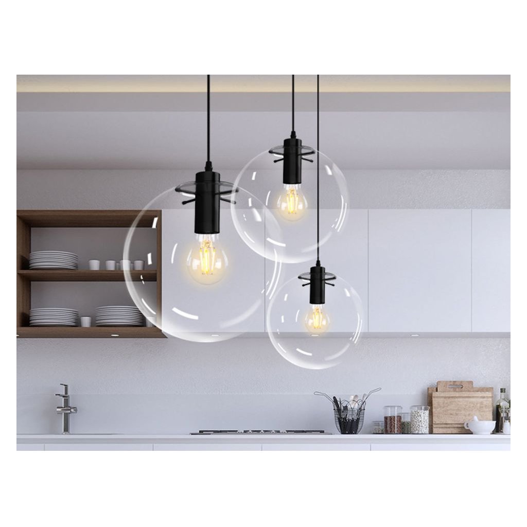 Lămpile sunt realizate din sticlă și metal cu capac de tavan. Lampa are cel mai popular fir proiectat pentru becul E27. Lungimea cablului poate fi adaptată încăperii sau amenajării.
