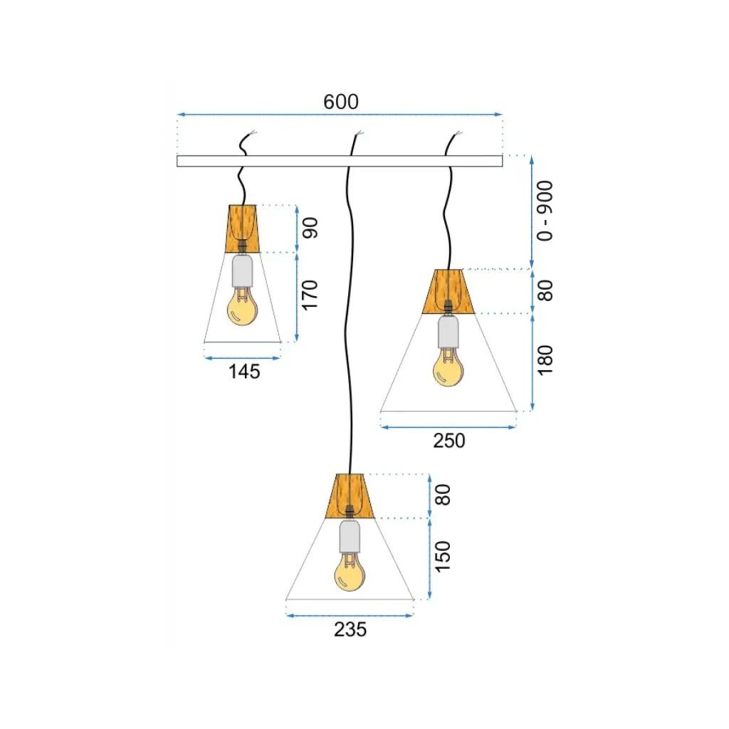 Lămpile sunt realizate în întregime din metal cu grilă pe tavan. Lampa are cel mai popular filament proiectat pentru becul E27. Lungimea cablului poate fi ajustată în funcție de cameră sau de aranjament.