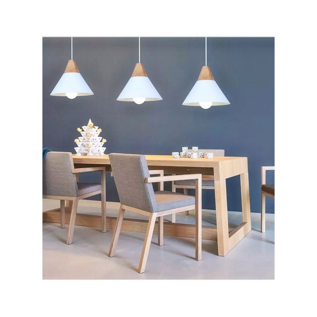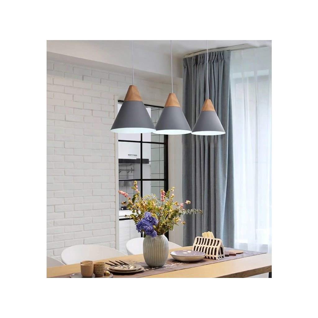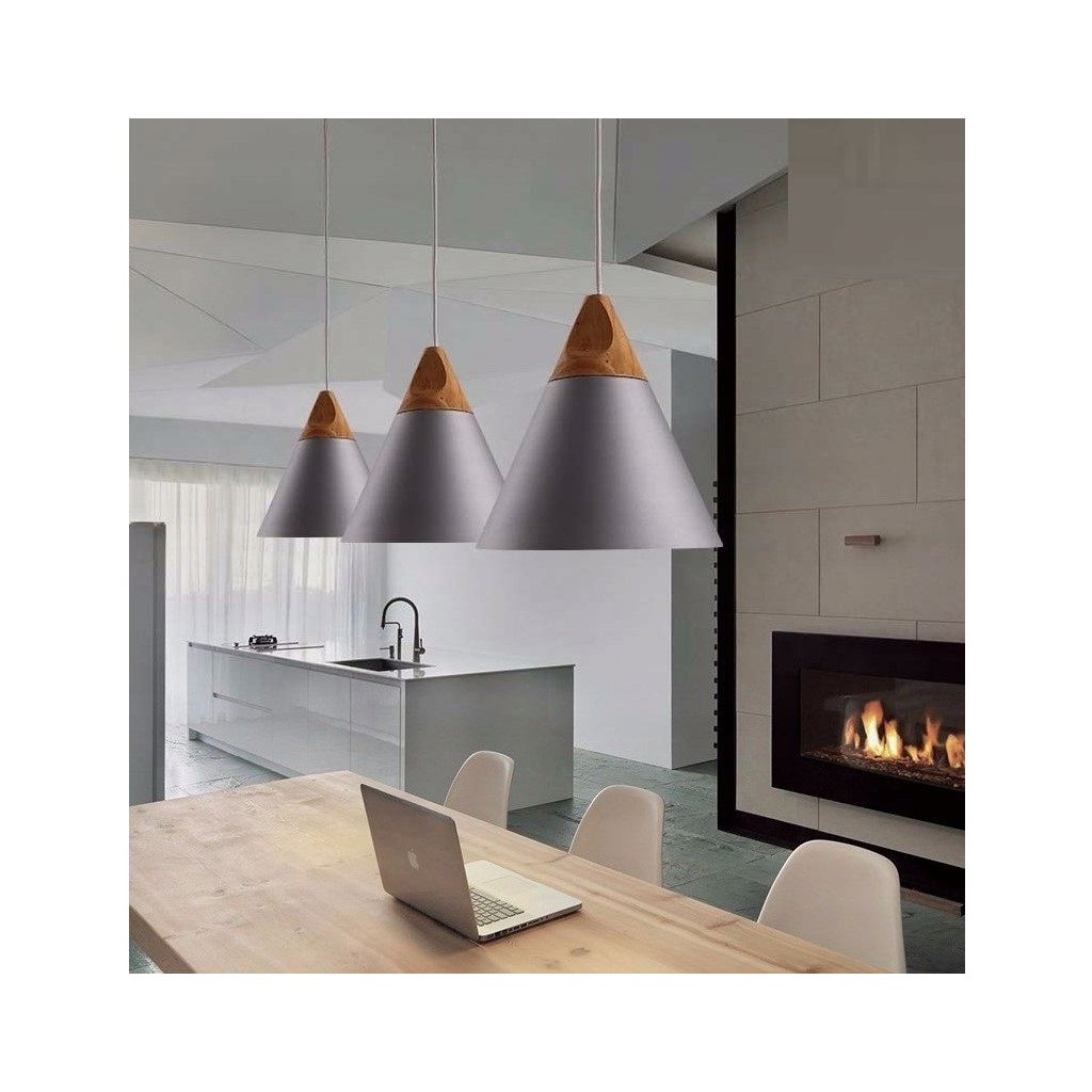 Lampa este realizata din lemn in combinatie cu metal si o grila metalica langa tavan. Lampa are cel mai popular fir proiectat pentru becul E27. Lungimea cablului poate fi ajustată în funcție de cameră sau de aranjare.