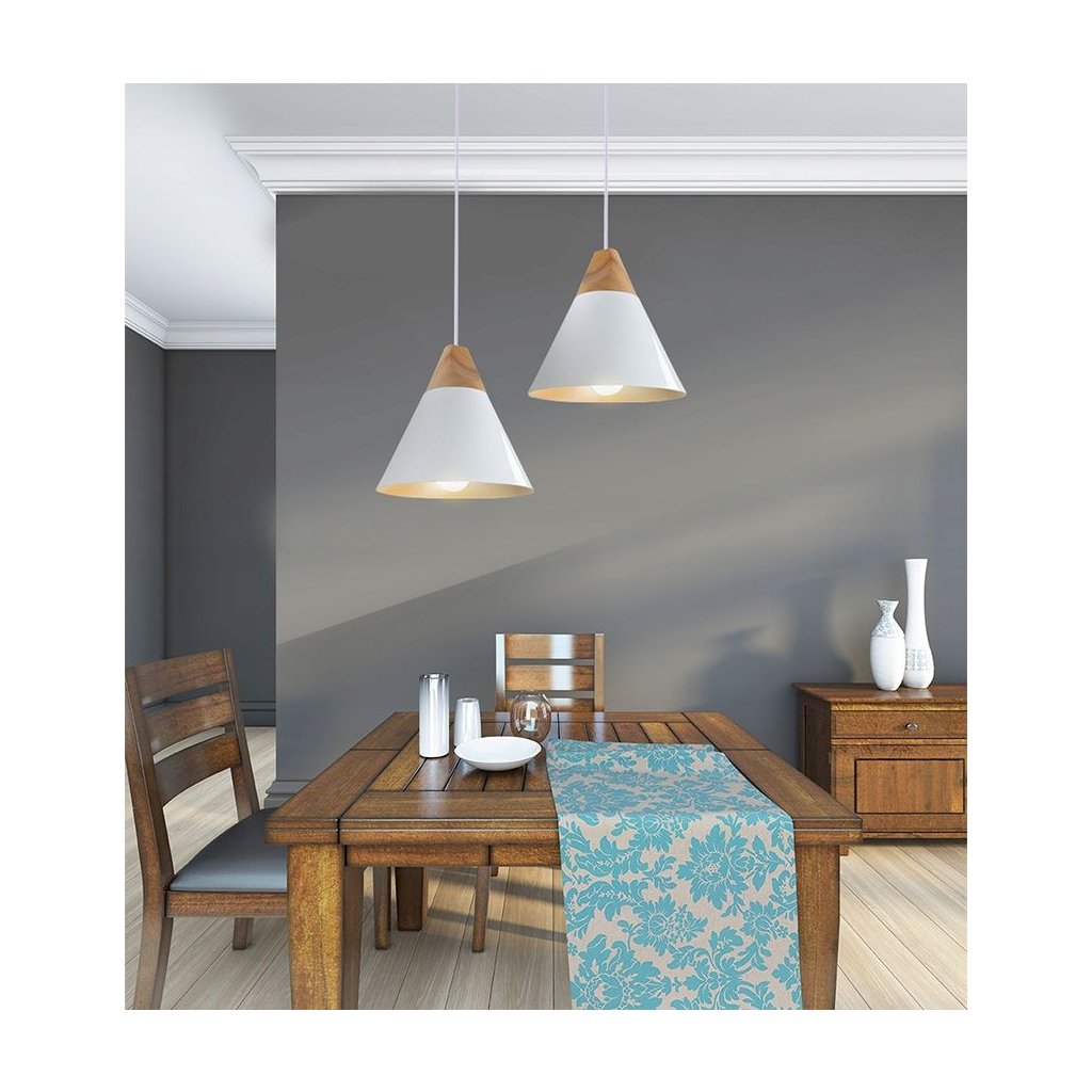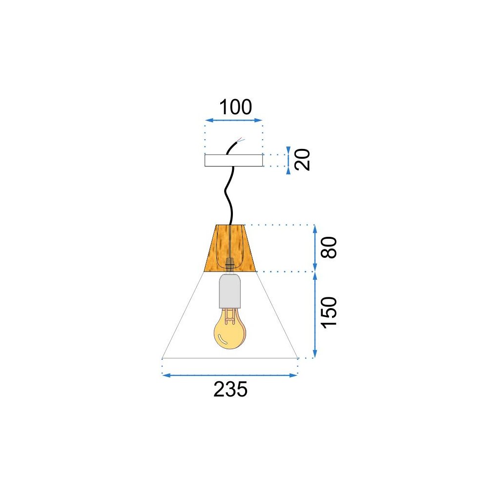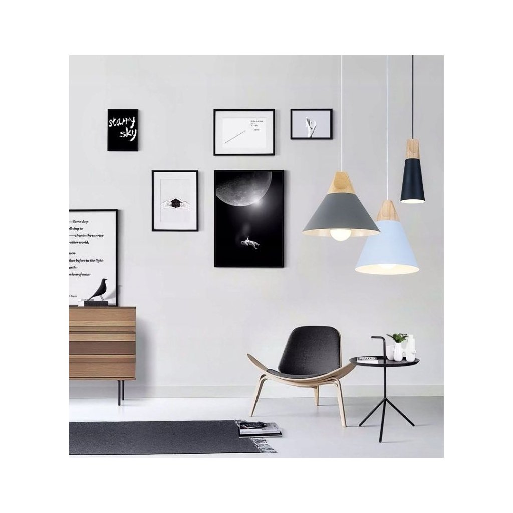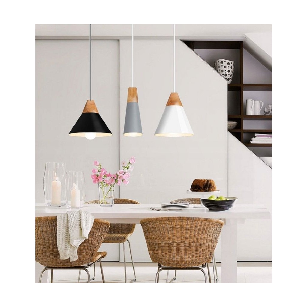 Lampa este realizata din lemn in combinatie cu metal si o grila metalica langa tavan. Lampa are cel mai popular fir proiectat pentru becul E27. Lungimea cablului poate fi ajustată în funcție de cameră sau de aranjare.