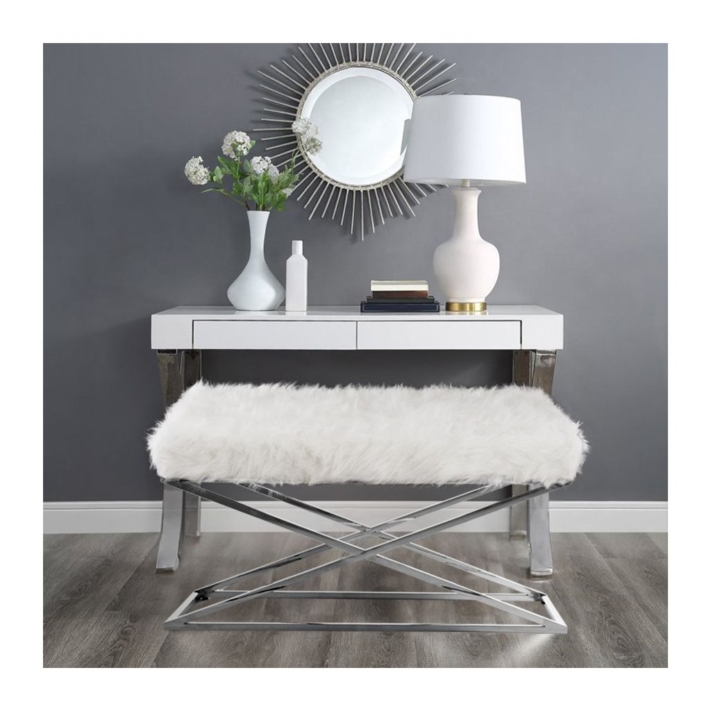 Banca extrem de simplă și funcțională este dedicată persoanelor care prețuiesc eleganța și un interior sofisticat. Finisajul cromat al oțelului cu o secțiune dreptunghiulară și un scaun din blană moale se potrivește perfect într-o cameră modernă și elegantă. Banca se armonizează perfect cu diferite tipuri de stiluri arhitecturale de la stil fermecător, prin art deco până la stil modern.