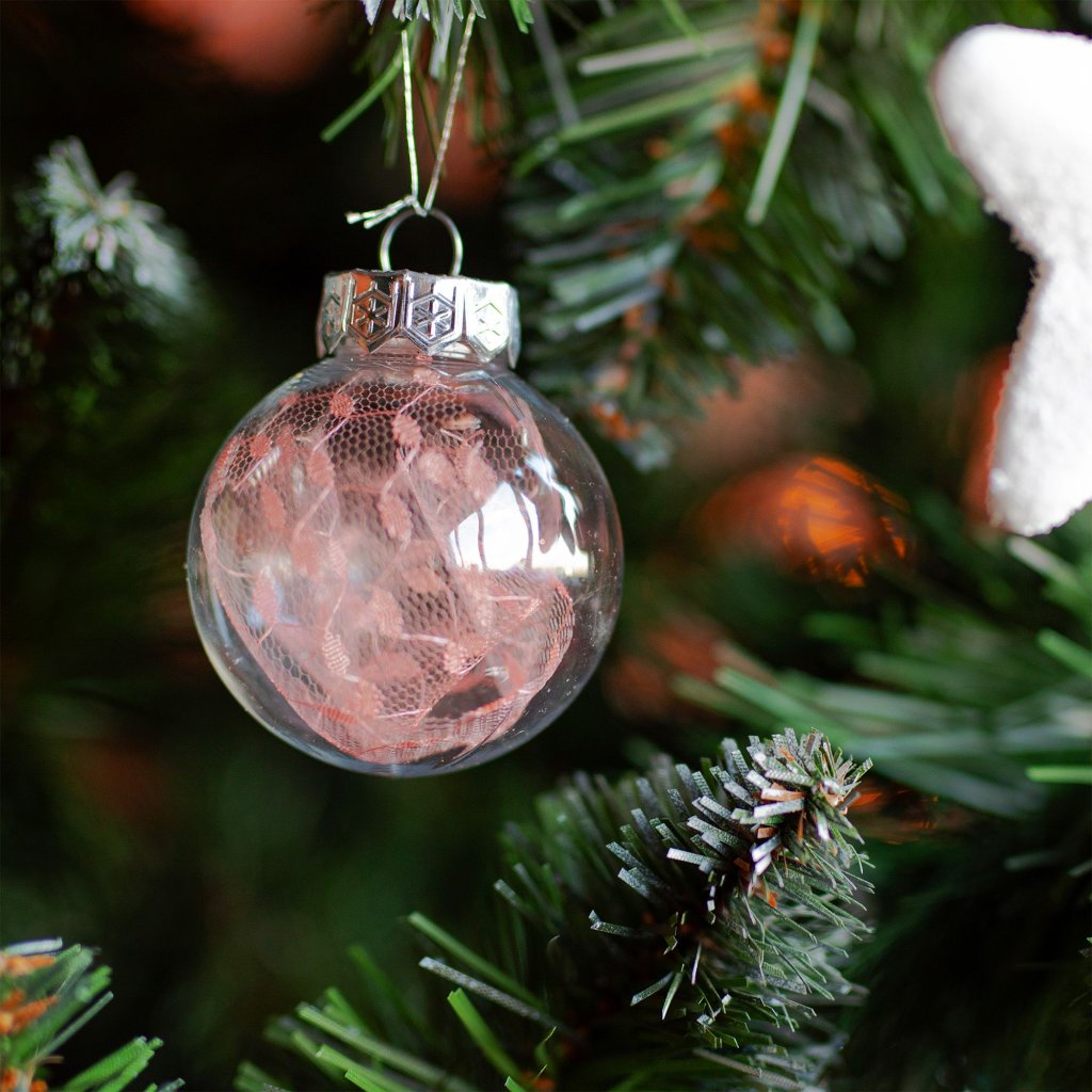 frumoase și neobișnuite bile de Crăciun Tutumi în roz! Nu sunt decorațiuni obișnuite, pentru că în loc de pereți uniformi, sunt transparenți, iar cel mai interesant lucru este în interiorul decorațiunilor. Mărgelele strălucitoare din interiorul ornamentelor le oferă un aspect interesant. Vor fi ideale pentru înfrumusețarea bradului și vor face camera să arate mai frumos. Erau din plastic, de asemenea, căderile nu îi vor speria.