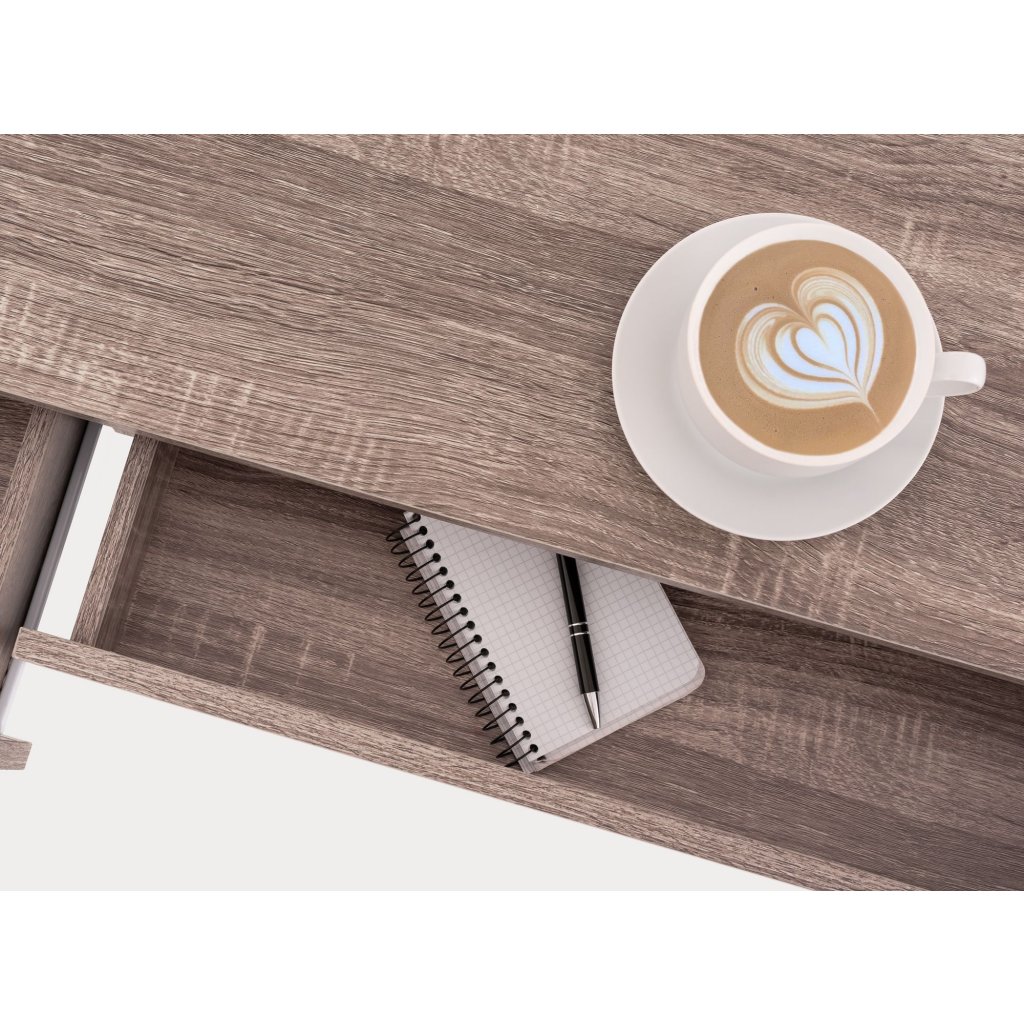 Corpul si blatul mesei - sunt realizate din MDF rezistent si stejar laminat Sonoma Tabac, ceea ce confera mobilierului eleganta.