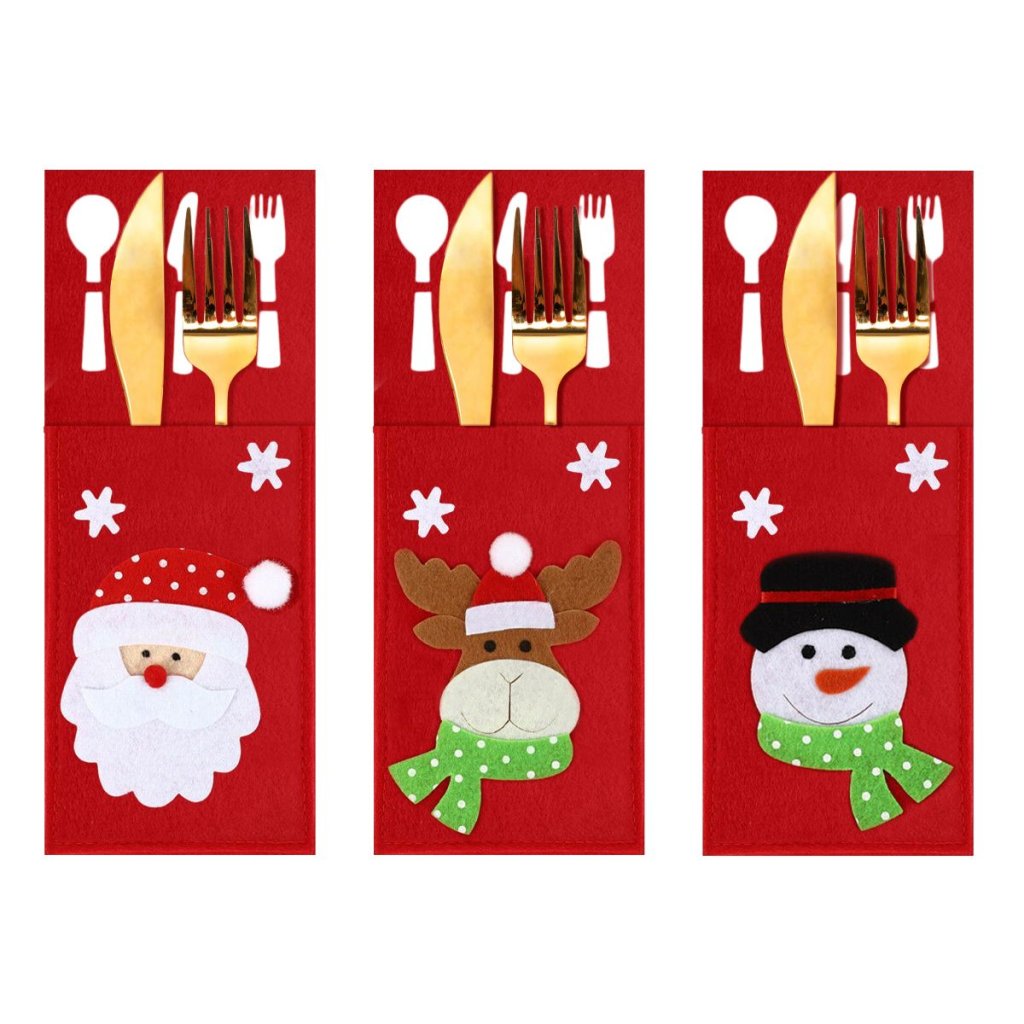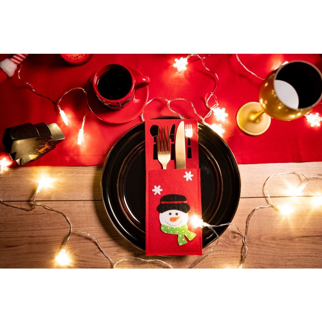 Tutumi, Husă decorativă pentru tacâmuri cu motiv de Crăciun 3 buc KF333, roșu, CHR-09517