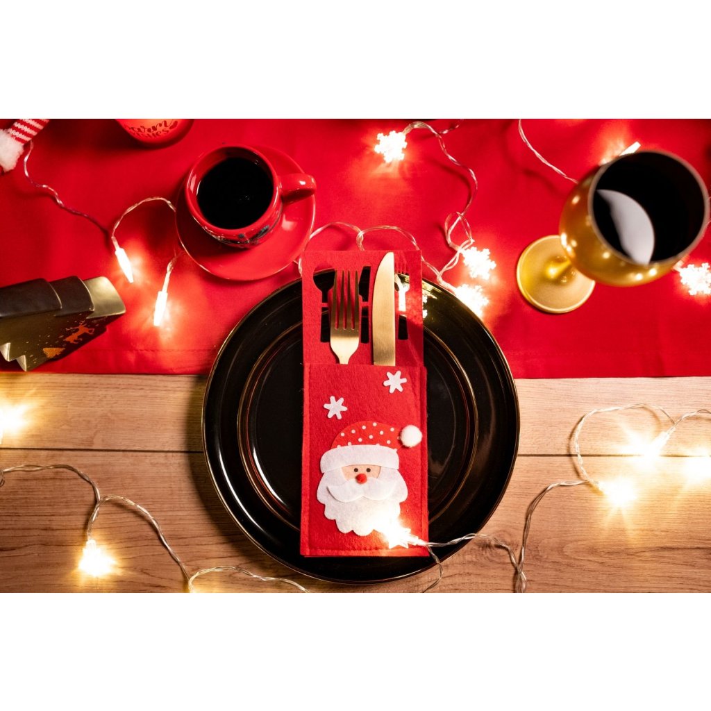 Surprinde-i pe cei dragi cu o masa frumos decorata in timpul cinei de Craciun. Husele roșii cu motiv de Crăciun se potrivesc perfect cu vasele albe și cu verdeața bradului de Crăciun. Setul contine 3 piese. Husele au fost proiectate și fabricate cu grijă, astfel încât să poată încânta ochiul în cea mai frumoasă perioadă a anului. Dimensiune universală - se potrivește cu majoritatea tacâmurilor.