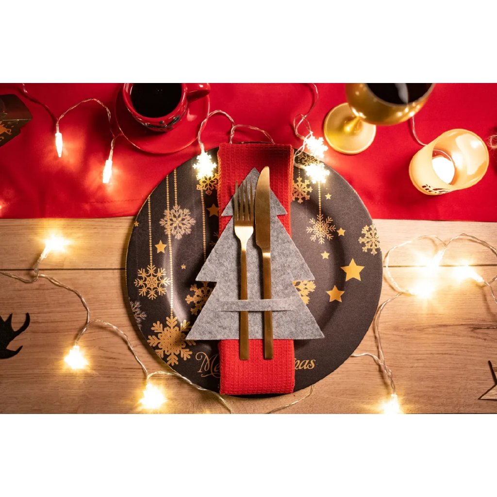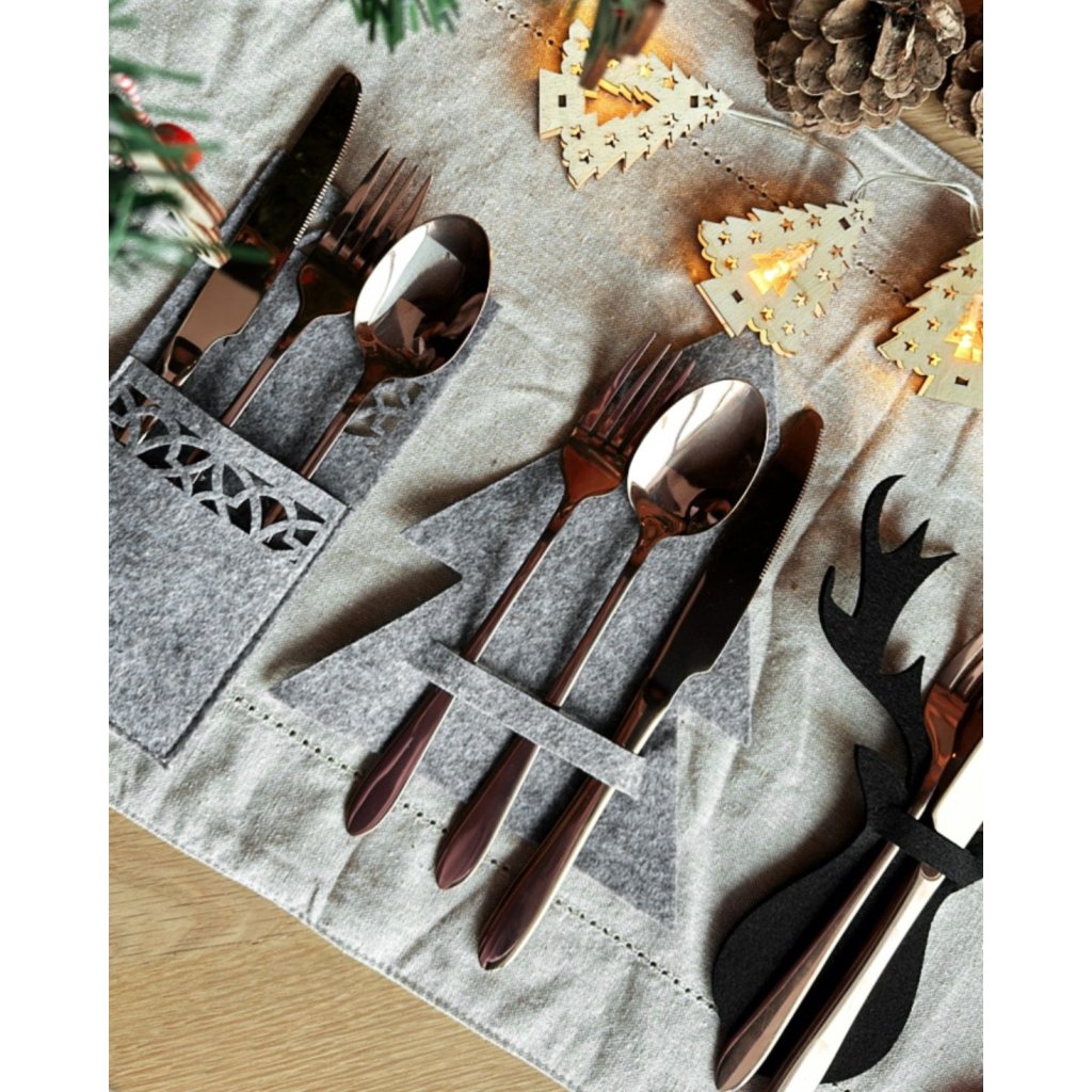 Tutumi, husă pentru tacâmuri de Crăciun 6 buc KF370-6, gri, CHR-09516