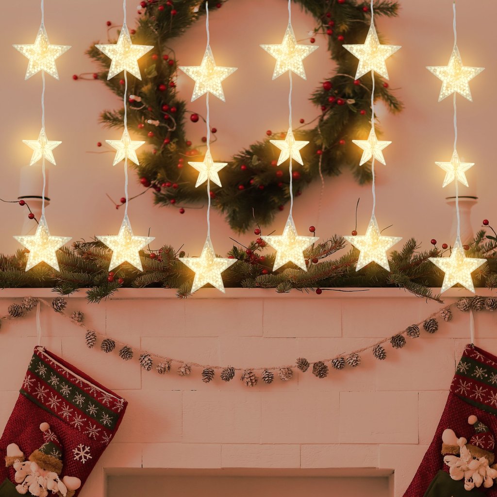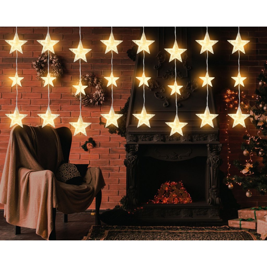 Simțiți magia Crăciunului. Decorează-ți casa, compania, hotelul, magazinul într-un mod unic. Lămpile sunt un decor ideal în interiorul casei. Vor fi un accent unic de Crăciun și un decor original care va mulțumi pe toată lumea. Setul de lămpi este format din 14 fulgi de zăpadă cu led suspendați cu dimensiuni de 10 x 10 cm atârnați pe tracțiuni cu dimensiunea de la 10 cm la 80 cm. Lungimea părții ușoare este de 250 cm. Setul include o telecomandă care vă permite să aprindeți și să stingeți luminile.