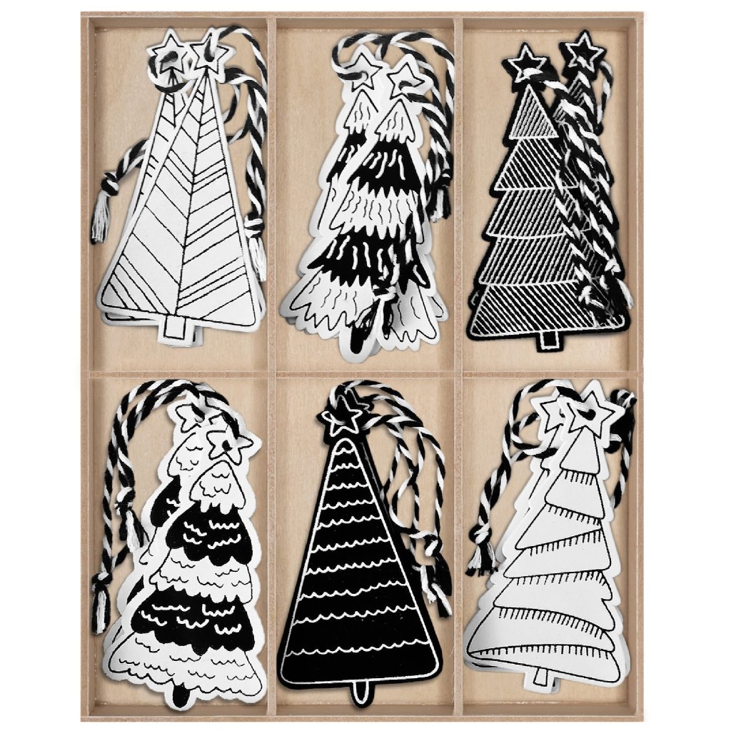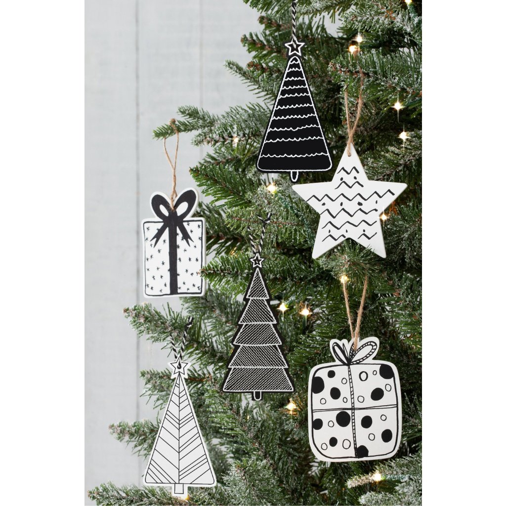Tutumi, set 12 decoratiuni pentru brad 9cm pentru agatat KL-21X16, alb-negru, CHR-00676
