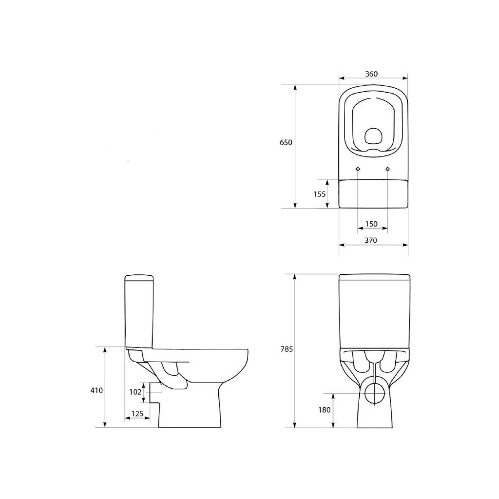 - Tip: toaletă combinată, deșeuri orizontale + alimentare cu apă din lateral