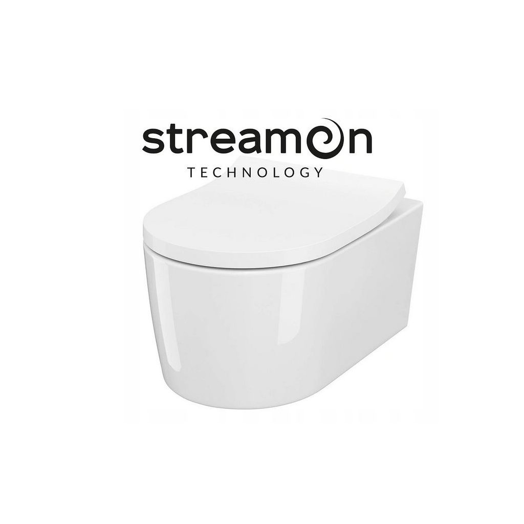 Vas WC suspendat Cersanit INVERTO StreamOn 52 x 35,5 cm + scaun cu cădere lentă, Alb, S701-432