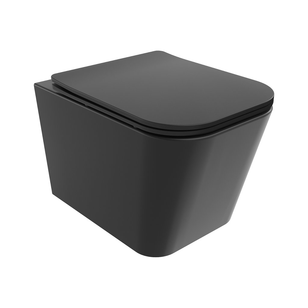 WC suspendat Mexen Teo fără margine cu scaun de toaletă Slim duroplast, negru mat - 30850685
